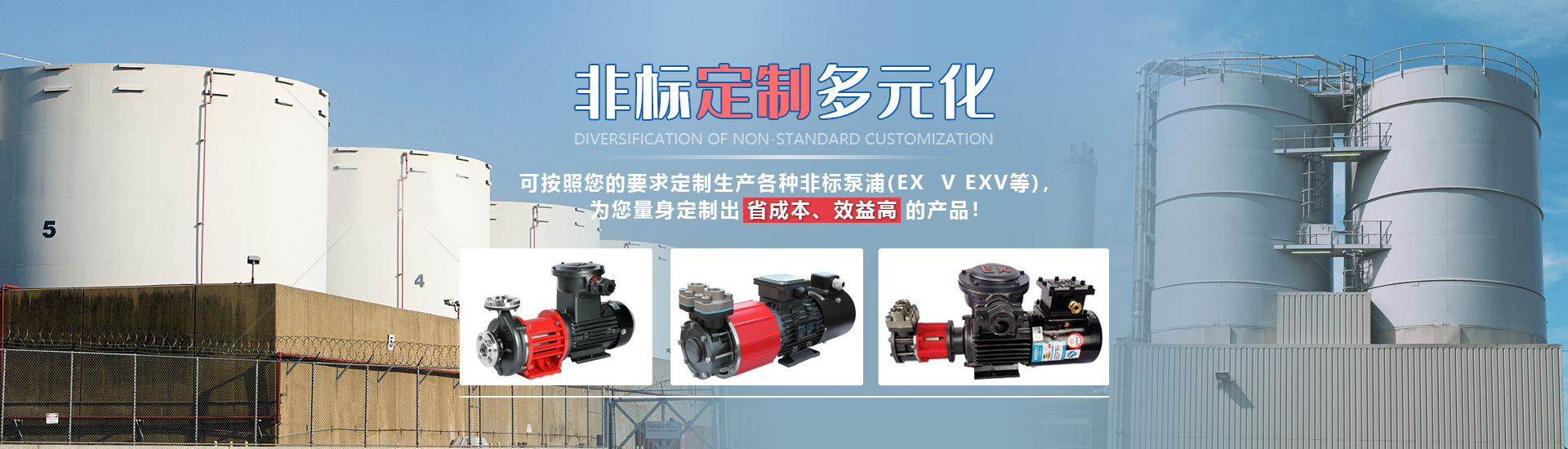 可根據(jù)您的工藝需求定制特殊電壓(V)、頻率(HZ)、防爆(EX)、防爆(EX)+變頻(V)等特殊產(chǎn)品,批量個(gè)性化定制開發(fā)等,給您提升效率,降低成本。不斷追求技術(shù)創(chuàng)新、得到更多企業(yè)認(rèn)可。公司產(chǎn)品包括旋渦磁力泵、輕型離心磁力泵、化工離心磁力泵、襯氟磁力泵、精密旋渦泵、大流量離心泵、小型高壓葉片泵、不銹鋼多級(jí)泵、立式管道泵等;產(chǎn)品耐溫范圍從低溫-196℃到高溫+400℃,涉及化工、環(huán)保、印染、醫(yī)藥、半導(dǎo)體、新能源、汽車、電子、軍工、食品、石油和通用機(jī)械等行業(yè)領(lǐng)域。